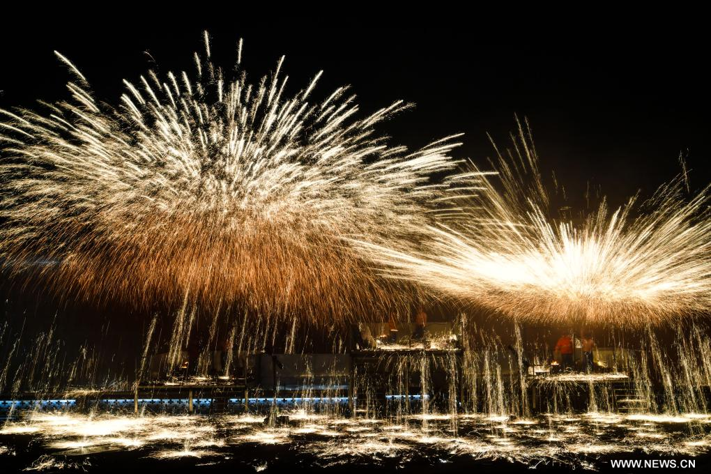 شينتشو 2 نوفمبر 2025 (شينخوا) في الصورة الملتقطة يوم 23 أكتوبر 2025، جانب لعرض ألعاب نارية في مدينة شينتشو القديمة في مقاطعة شانشي شمالي الصين.