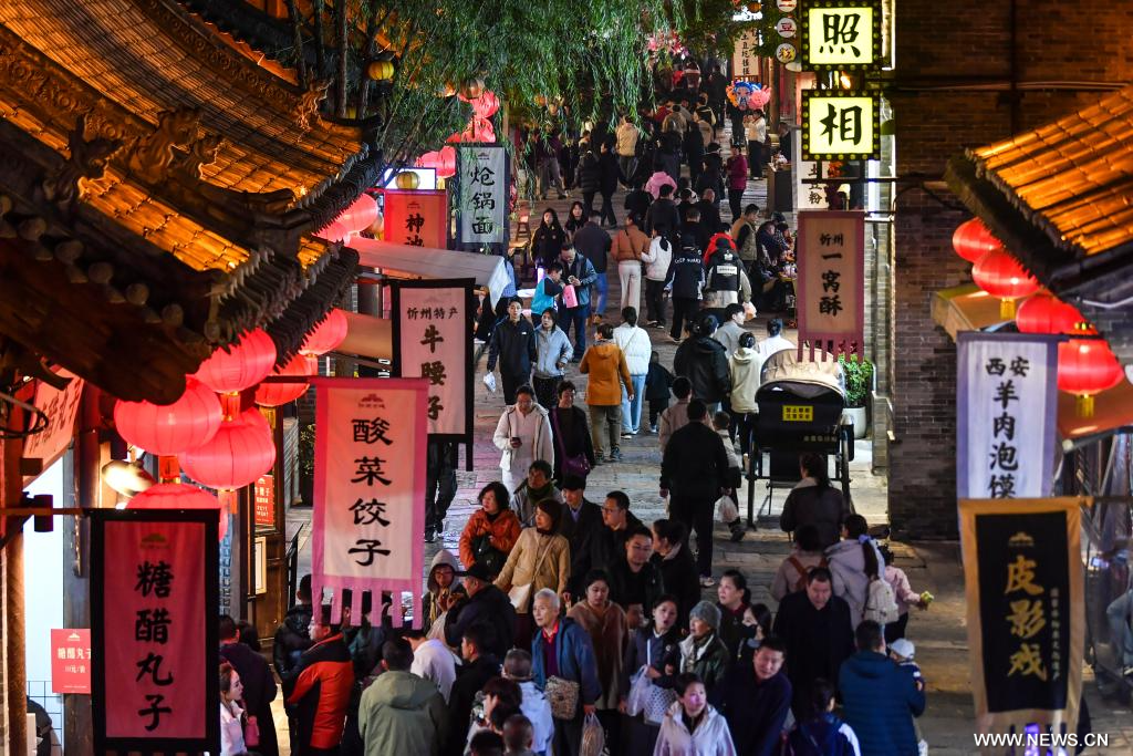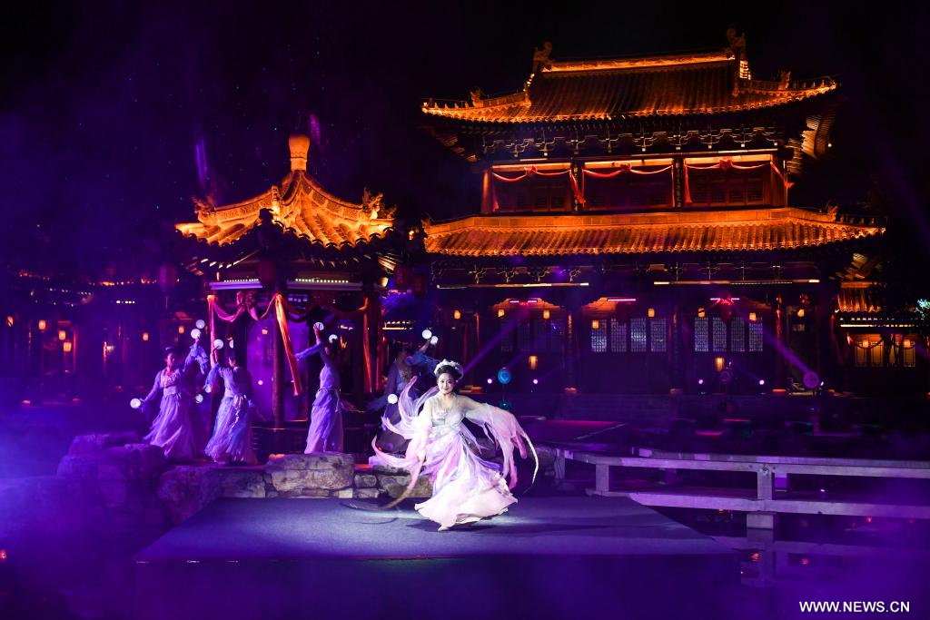 شينتشو 2 نوفمبر 2025 (شينخوا) في الصورة الملتقطة يوم 24 أكتوبر 2025، جانب لعرض راقص في مدينة شينتشو القديمة في مقاطعة شانشي شمالي الصين.