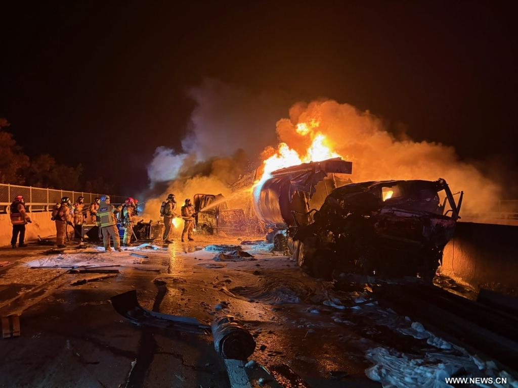سول 17 نوفمبر 2025 (شينخوا) لقي شخصان مصرعهما وأصيب أربعة آخرون في وقت مبكر من اليوم (الاثنين) إثر حادث تصادم متسلسل شمل 13 مركبة، من بينها شاحنة صهريجية وشاحنات بضائع وسيارات ركاب، في كوريا الجنوبية، حسبما أفادت وكالة ((يونهاب)) للأنباء.