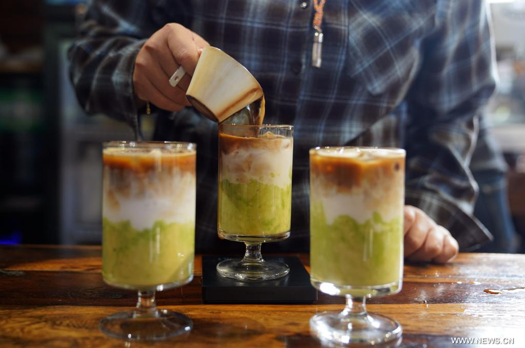بوأر 19 نوفمبر 2025 (شينخوا) في الصورة الملتقطة يوم 16 نوفمبر 2025، موظف يقدم قهوة بطعم الأفوكادو في شركة لإنتاج القهوة في محافظة منغليان في مدينة بوأر بمقاطعة يوننان في جنوب غربي الصين. ومنذ إدخال الأفوكادو وبدء زراعته في المحافظة في عام 2007، أصبحت محافظة منغليان حاليا واحدة من أكبر قواعد زراعة الأفوكادو في الصين، حيث تبلغ مساحة زراعة الأفوكادو فيها أكثر من 120 ألف مو (حوالي 8000 هكتار).