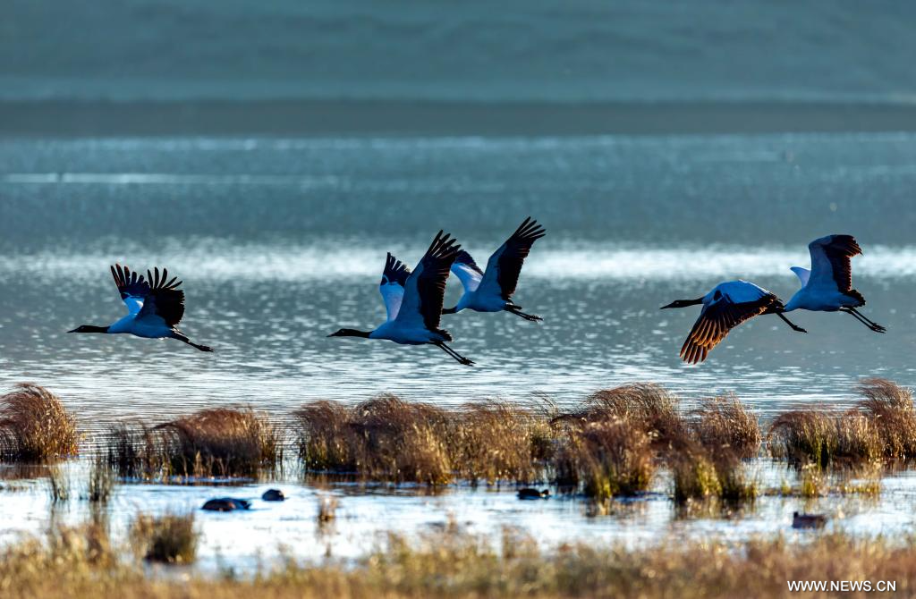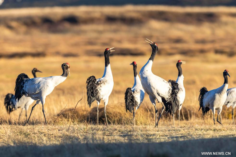طيور الكركي سوداء العنق في جنوب غربي الصين
