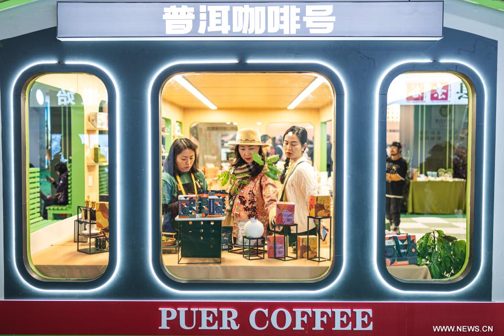 بوأر 6 ديسمبر 2025 (شينخوا) في الصورة الملتقطة يوم 5 ديسمبر 2025، جانب من معرض الصين (بوأر) الدولي للقهوة 2025 ومعرض وتجارة شاي بوأر، في مقاطعة يوننان بجنوب غربي الصين.