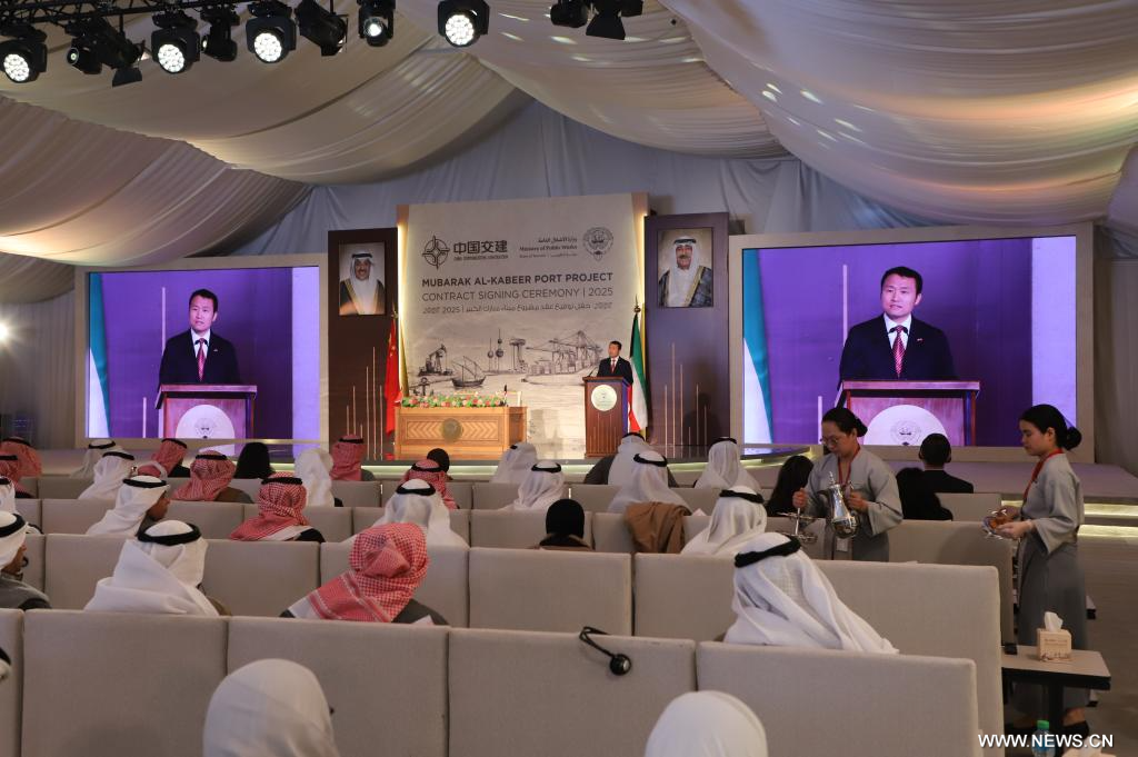 رئيس الوزراء الكويتي يشيد بالعلاقات مع الصين أثناء توقيع عقد بشأن مشروع ميناء مبارك الكبير