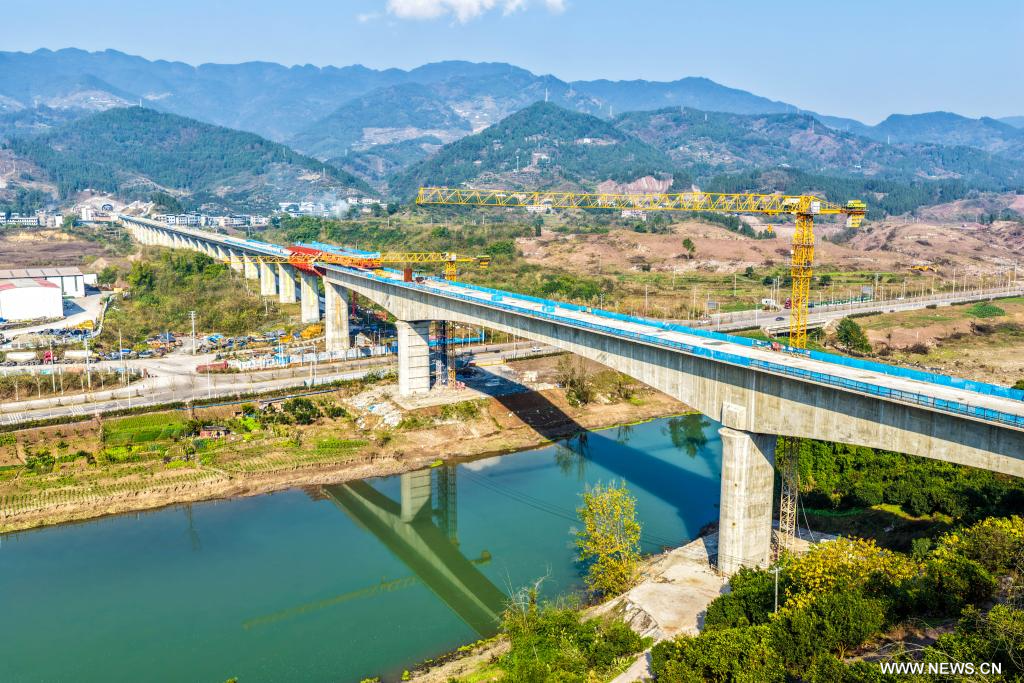 إتمام ربط طرفي جسر كبير قيد البناء على خط شيآن-تشونغتشينغ للسكك الحديد فائقة السرعة بجنوب غربي الصين