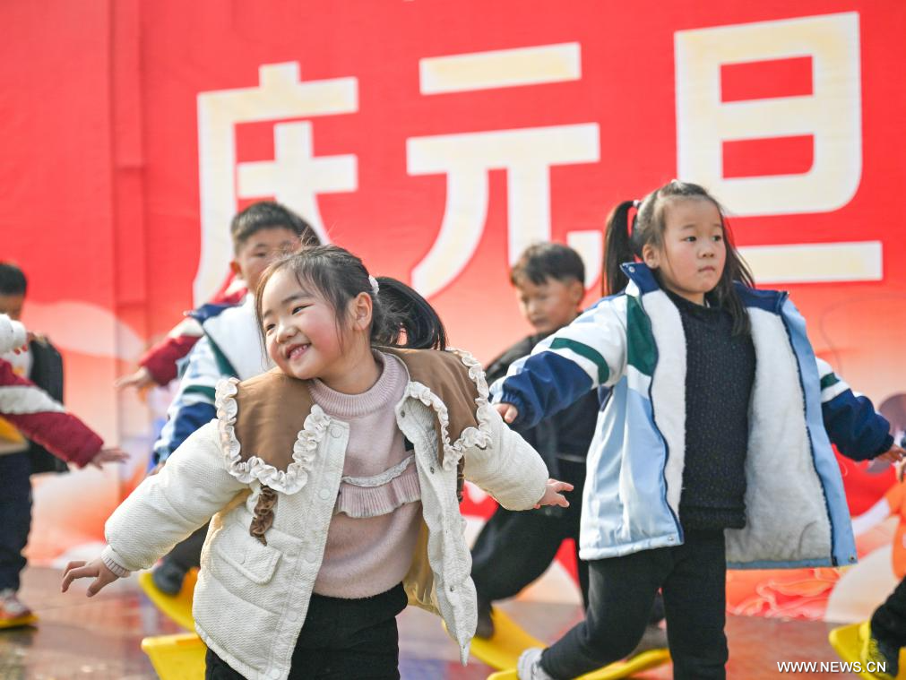 بكين 31 ديسمبر 2025 (شينخوا) في الصورة الملتقطة يوم 29 ديسمبر 2025، أطفال يرقصون في روضة أطفال بمدينة شانغتشيو في مقاطعة خنان بوسط الصين، فيما تنظم أنشطة متنوعة في أنحاء البلاد احتفالا بقدوم العام الجديد.