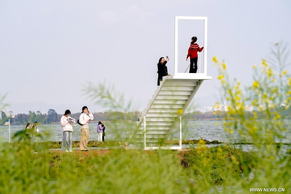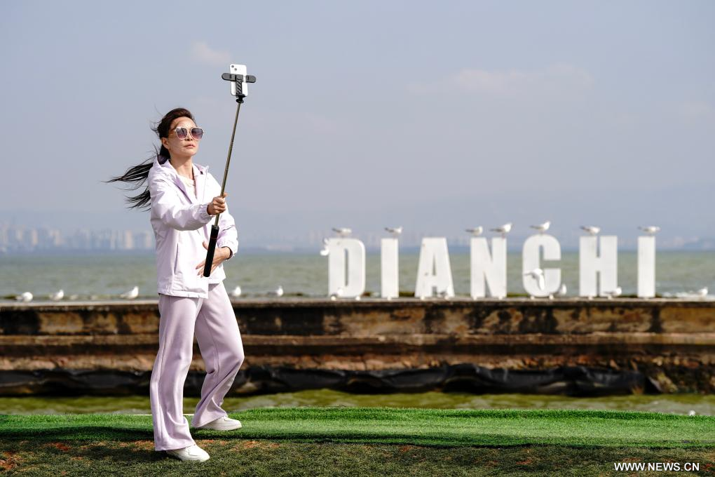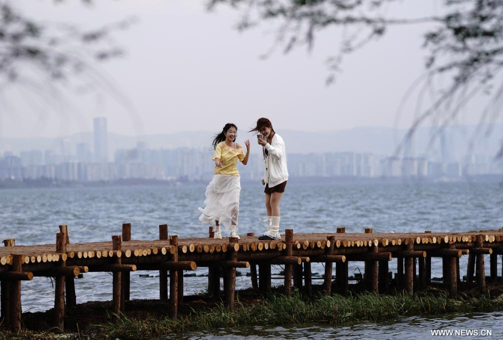 كونمينغ 27 فبراير 2026 (شينخوا) في الصورة الملتقطة يوم 26 فبراير 2026، جانب من بحيرة ديانتشي في مدينة كونمينغ بمقاطعة يوننان في جنوب غربي الصين.