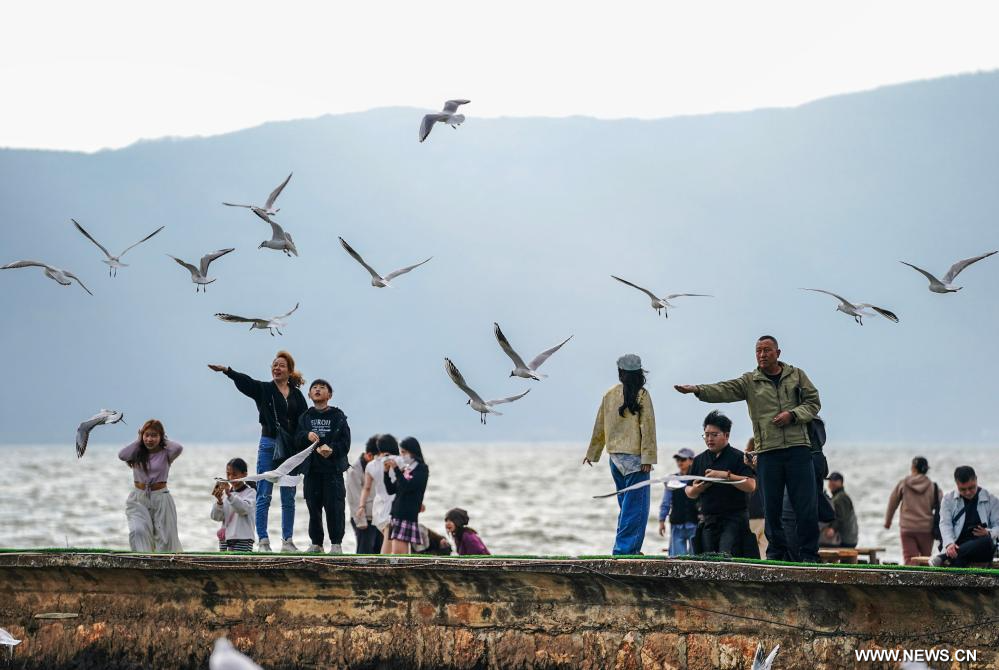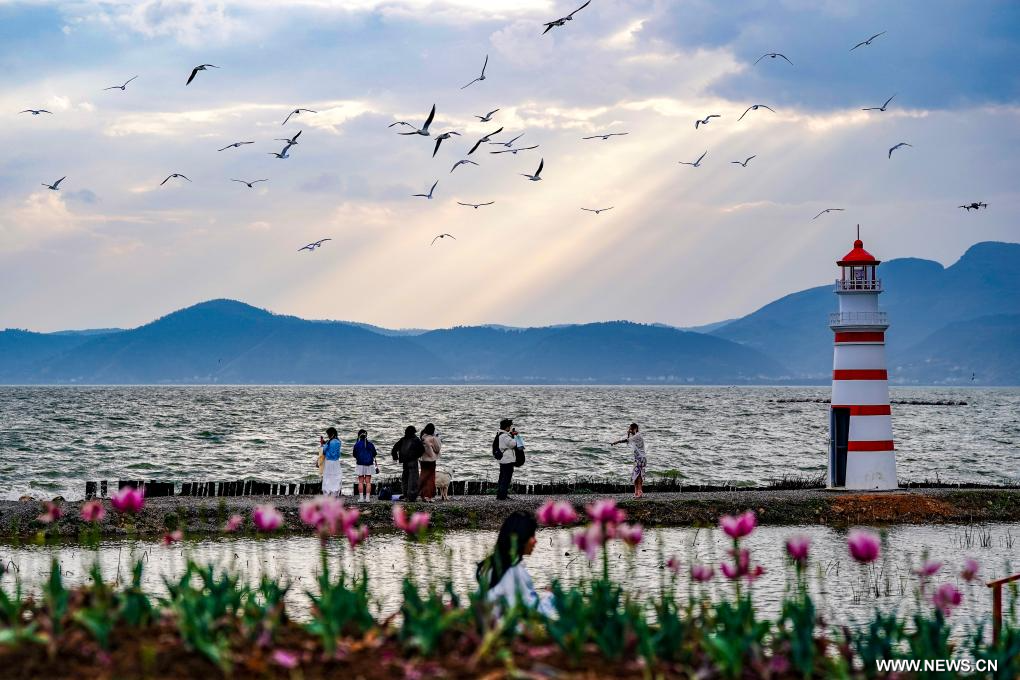 السياحة في بحيرة ديانتشي في مدينة كونمينغ بجنوب غربي الصين