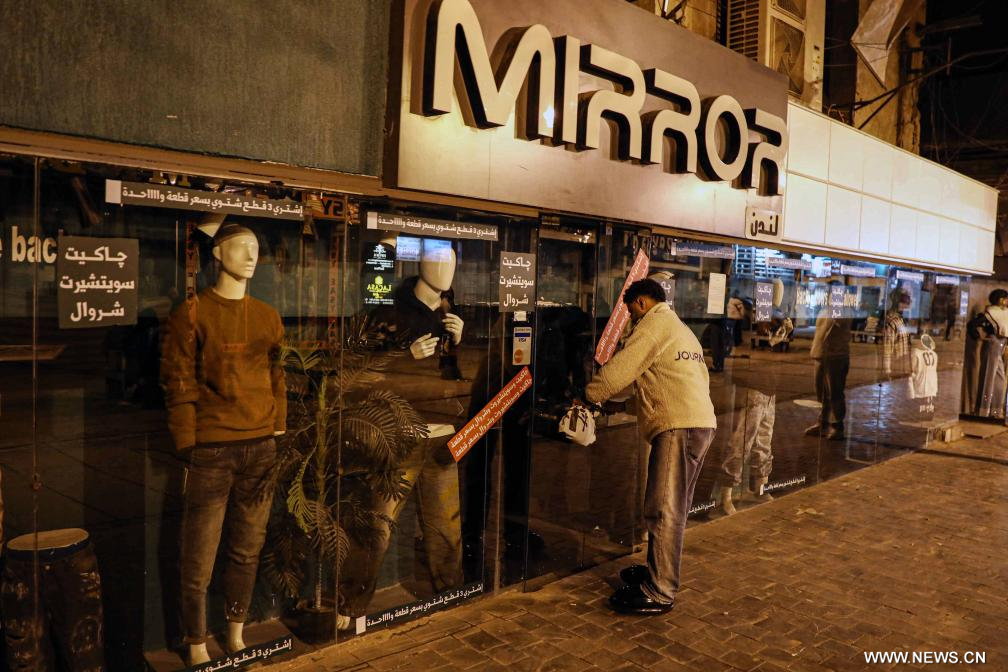 في الصورة الملتقطة يوم 30 مارس 2026، رجل يغلق باب متجر في العاصمة المصرية القاهرة.