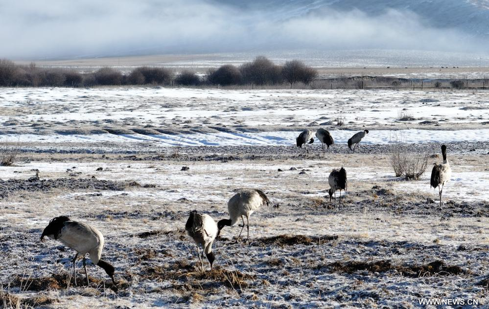 طيور الكركي ذات الرقبة السوداء في جنوب غربي الصين
