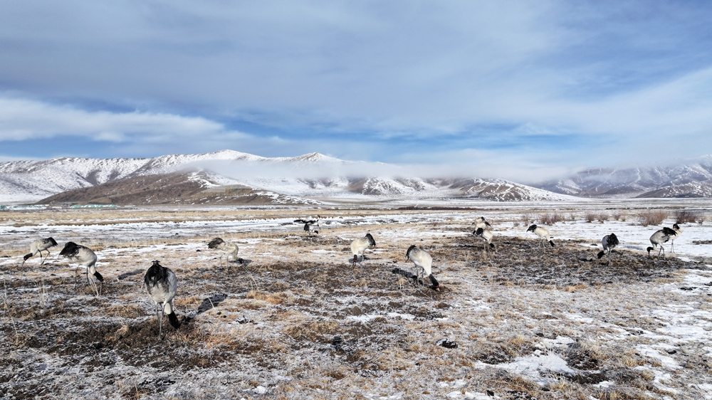 طيور الكركي ذات الرقبة السوداء في جنوب غربي الصين