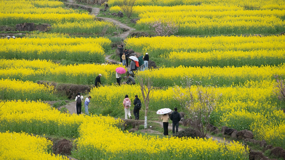 أزهار اللفت المتفتحة على ضفاف نهر شينآن بمقاطعة آنهوي شرقي الصين