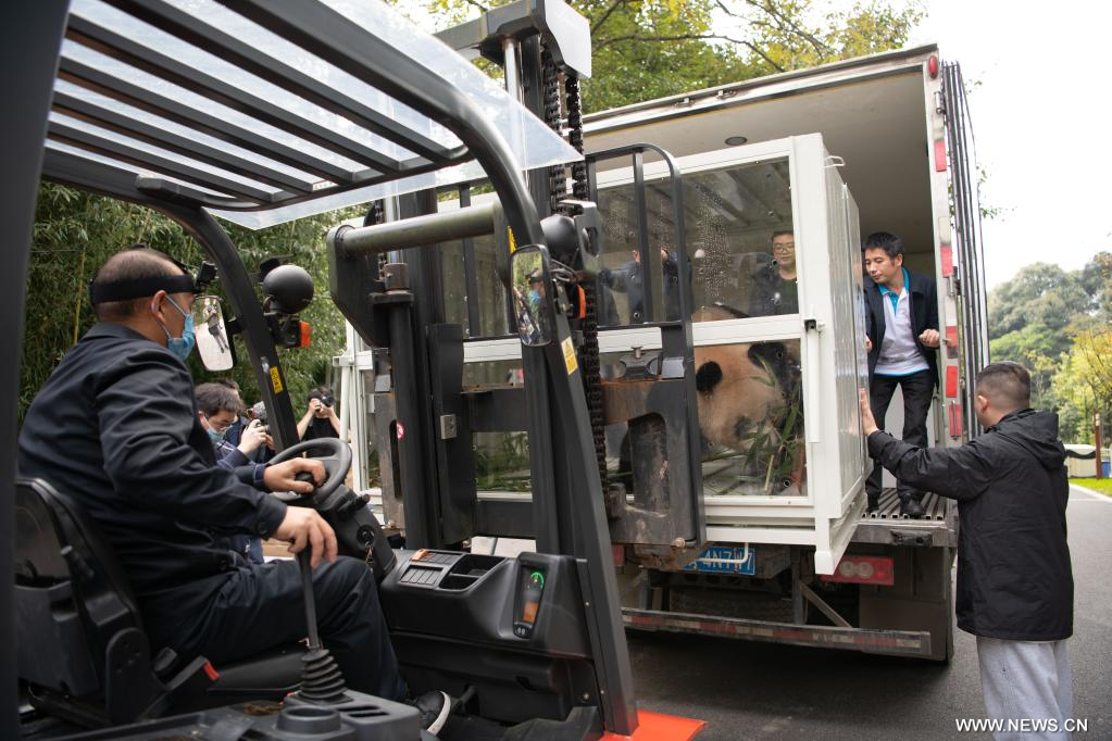 أرسل المركز الصيني لحماية وبحوث الباندا العملاقة مُربين وأطباء بيطريين ذوي خبرة لمرافقة الحيوانين ومساعدتهما على التكيف مع البيئة الجديدة.