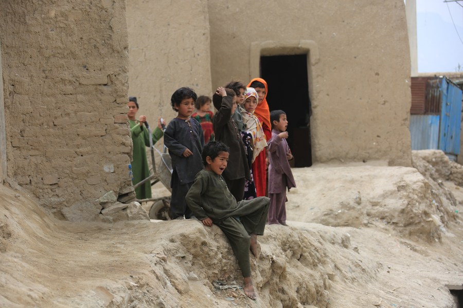 صورة ملتقطة لأطفال أفغان في مخيم للنازحين داخل البلاد في كابول، عاصمة أفغانستان يوم 23 مايو 2023. (شينخوا)