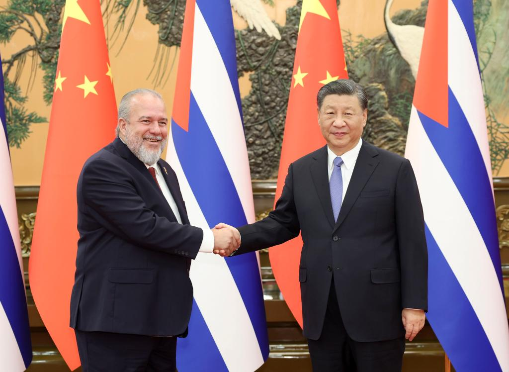 بكين 6 نوفمبر 2023 (شينخوا) التقى الرئيس الصيني شي جين بينغ، اليوم (الاثنين)، رئيس الوزراء الكوبي مانويل ماريرو كروز.