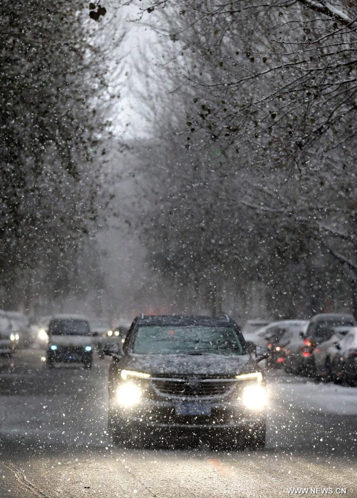 شنيانغ 9 نوفمبر 2023 (شينخوا) في الصورة الملتقطة يوم 8 نوفمبر 2023، سيارات تتحرك أثناء تساقط الثلوج في حي هوانغقو بمدينة شنيانغ، حاضرة مقاطعة لياونينغ بشمال شرقي الصين. وشهدت شنيانغ جولة جديدة من تساقط الثلوج يوم الأربعاء الماضي، وذلك بعد تساقط ثلوج كثيفة بسبب موجة باردة يوم الاثنين الماضي.