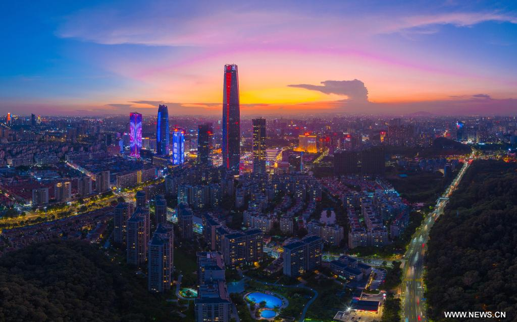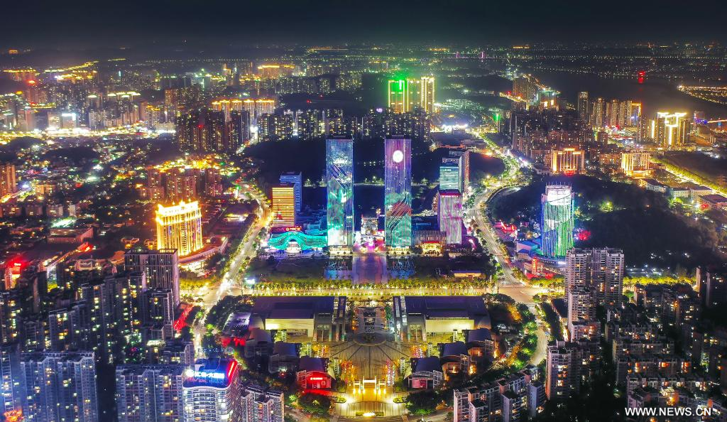 قوانغتشو 18 فبراير 2024 (شينخوا) في الصورة الملتقطة جواً يوم 29 سبتمبر 2023، منظر ليلي في مدينة جيانغمن بمقاطعة قوانغدونغ في جنوبي الصين.