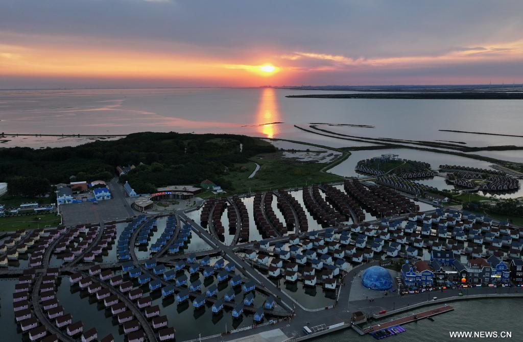 شيجياتشوانغ 29 أغسطس 2024 (شينخوا) في الصورة الملتقطة جوا يوم 28 أغسطس 2024، مشهد بديع لجزيرة تانغشان السياحية في مدينة تانغشان بمقاطعة خبي بشمالي الصين. وفي السنوات الأخيرة، بذلت الجزيرة جهودا دؤوبة لتطوير مواقعها السياحية واستقطاب المزيد من السياح.