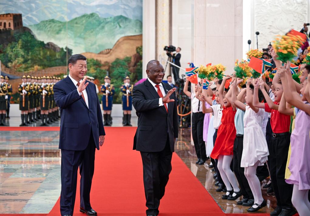 وقبل الاجتماع، أقام شي مراسم ترحيب بالرئيس رامافوزا في قاعة الشعب الكبرى.