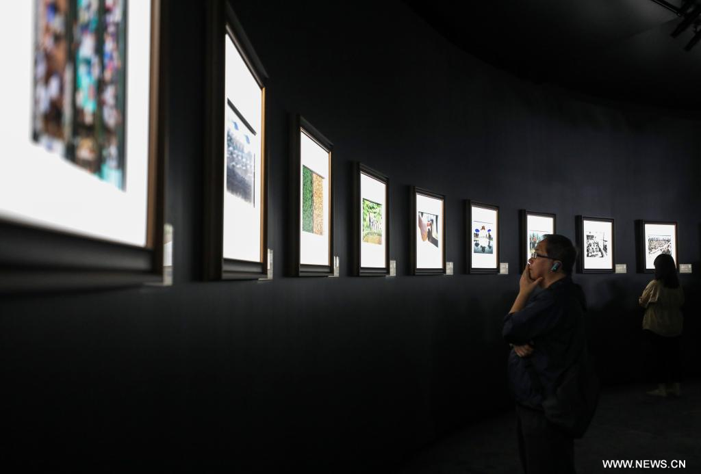 بكين 26 سبتمبر 2024 (شينخوا) يتدفق ضوء الشمس إلى قاعة المعرض في الطابق الـ39 من مبنى شاهق في بكين، ويضئ مجموعة كبيرة من الصور تبلغ نحو 500 صورة التقطتها أجيال من الصحفيين الصينيين.