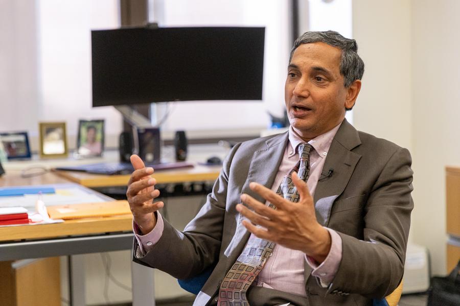 كريشنا سرينيفاسان، مدير إدارة آسيا والباسيفيك بصندوق النقد الدولي يتحدث خلال مقابلة مع وكالة أنباء ((شينخوا)) في واشنطن العاصمة، الولايات المتحدة يوم 22 أكتوبر 2024. (شينخوا)