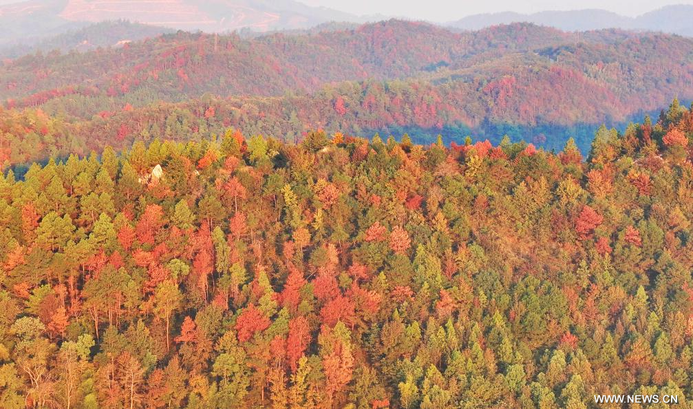 بكين أول نوفمبر 2024 (شينخوا) في الصورة الملتقطة جوا يوم 31 أكتوبر 2024، منظر خريفي جميل في محافظة هنغشان بمدينة هنغيانغ بمقاطعة هونان بوسط الصين.