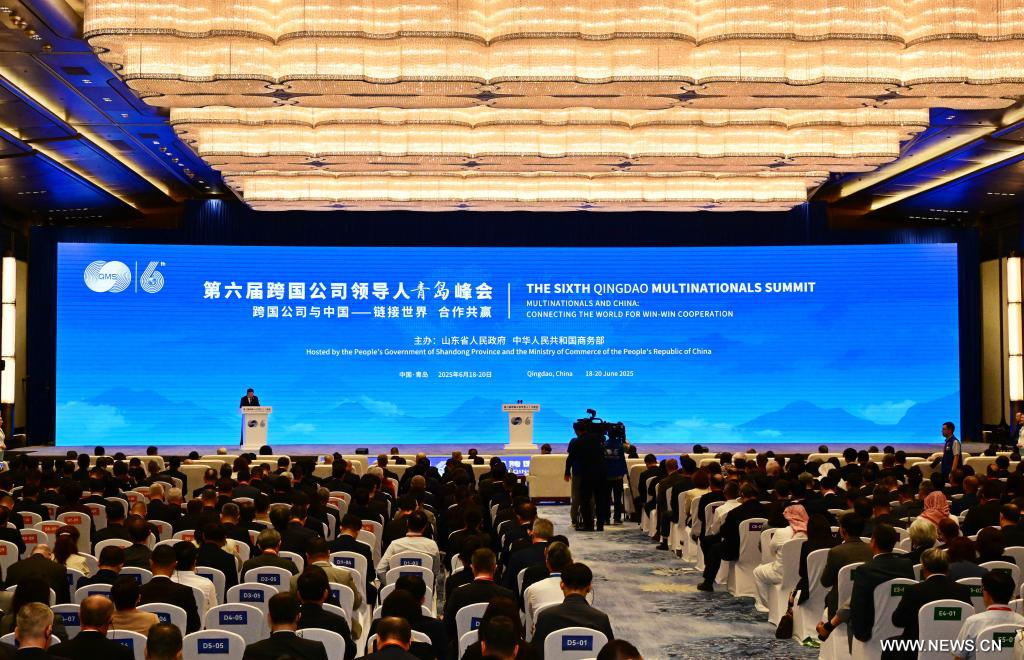 تشينغداو 20 يونيو 2025 (شينخوا) في الصورة الملتقطة يوم 19 يونيو 2025، جانب من مراسم افتتاح قمة تشينغداو السادسة للشركات متعددة الجنسيات في مدينة تشينغداو الساحلية بمقاطعة شاندونغ بشرقي الصين.