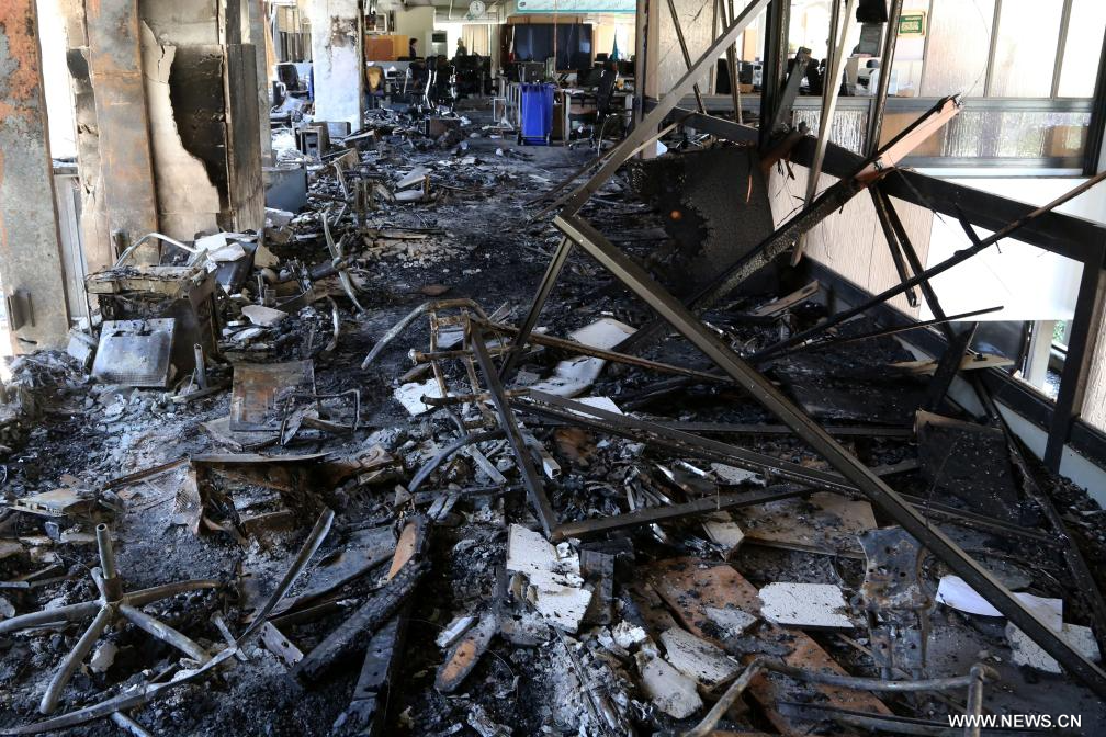 طهران 23 يونيو 2025 (شينخوا) في الصورة الملتقطة يوم 19 يونيو 2025، مشهد عقب الهجوم على مبنى لهيئة الإذاعة والتليفزيون الإيرانية في العاصمة الإيرانية طهران.