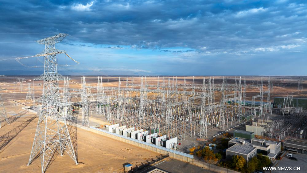أورومتشي 7 يوليو 2025 (شينخوا) في الصورة الملتقطة أول نوفمبر 2023، محطة تحويل لمشروع هامي-تشنغتشو لنقل الطاقة الكهربائية ذات التيار المستمر فائق الجهد بقدرة 800 كيلو فولت في مدينة هامي بمنطقة شينجيانغ الويغورية ذاتية الحكم في شمال غربي الصين.