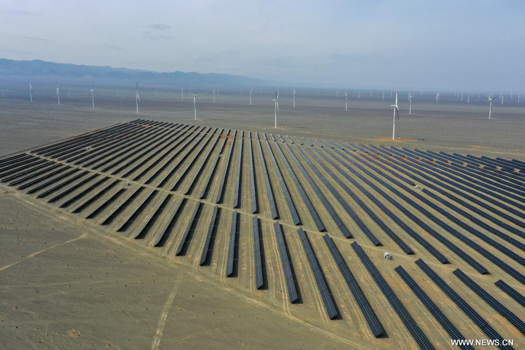 أورومتشي 7 يوليو 2025 (شينخوا) في الصورة الملتقطة يوم 23 مارس 2025، محطة طاقة شمسية لمشروع هامي-تشونغتشينغ لنقل الكهرباء بالتيار المستمر فائق الجهد بقدرة 800 كيلو فولت في مدينة هامي بمنطقة شينجيانغ الويغورية ذاتية الحكم في شمال غربي الصين.