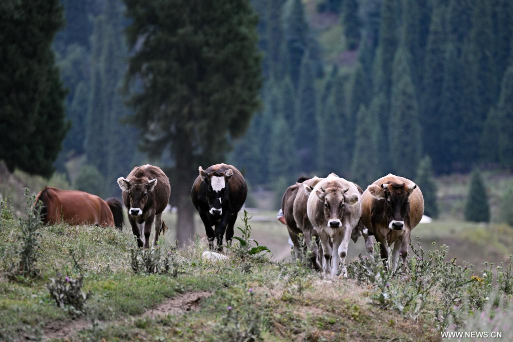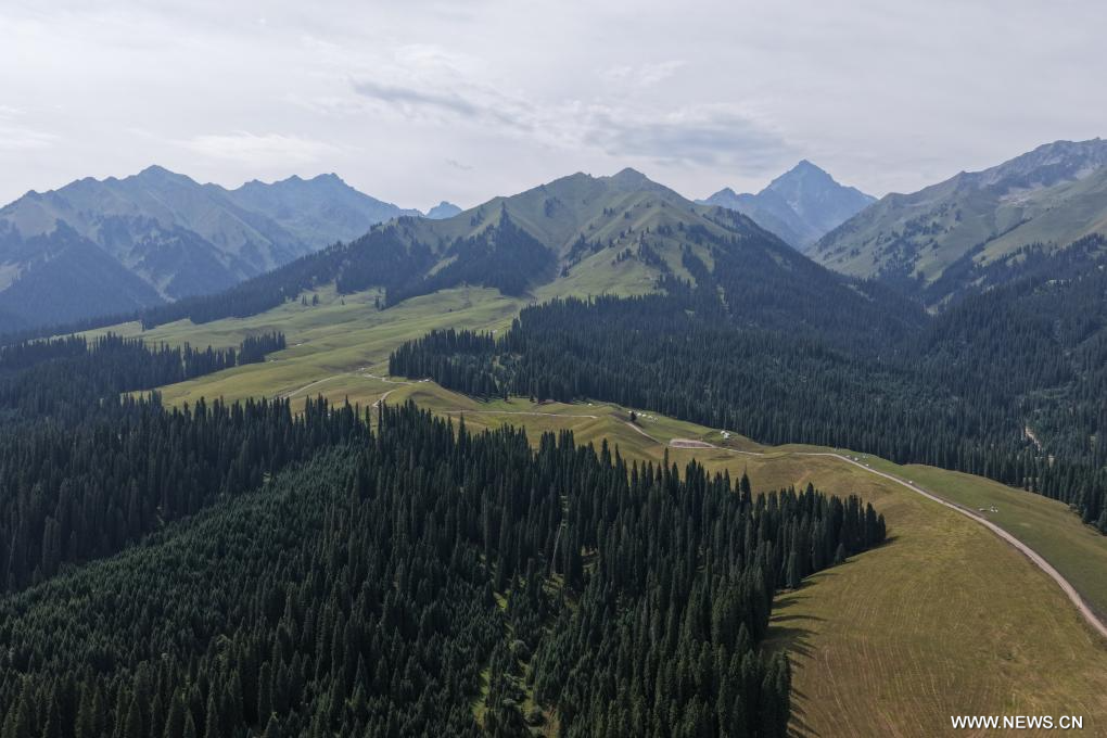 ييلي 6 أغسطس 2025 (شينخوا) في الصورة الملتقطة يوم 2 أغسطس 2025، مناظر خلابة لأشجار التنوب في محافظة قونغليو بولاية إيلي ذاتية الحكم لقومية القازاق في منطقة شينجيانغ الويغورية ذاتية الحكم في شمال غربي الصين.