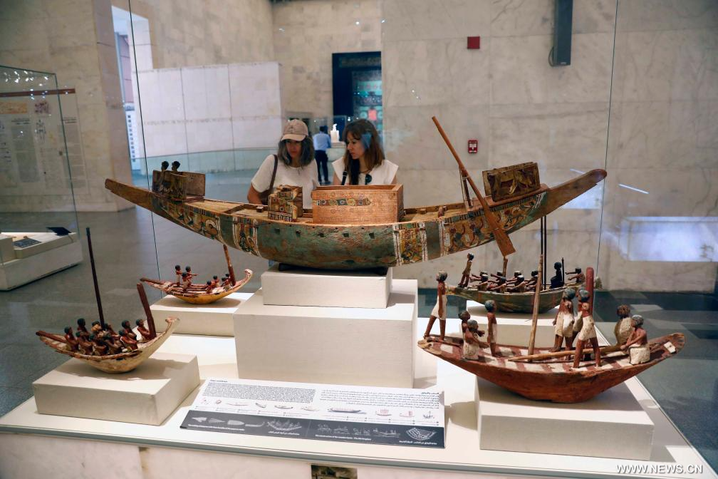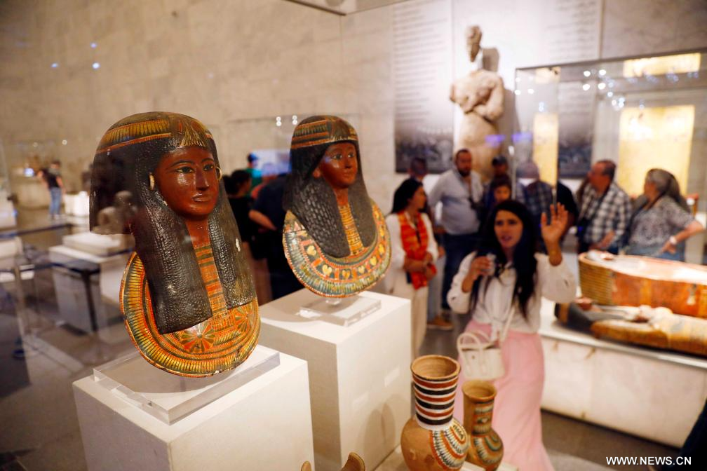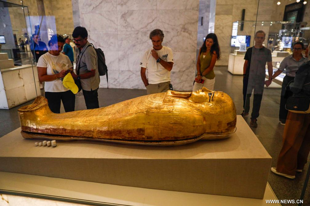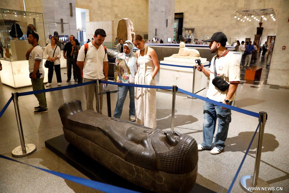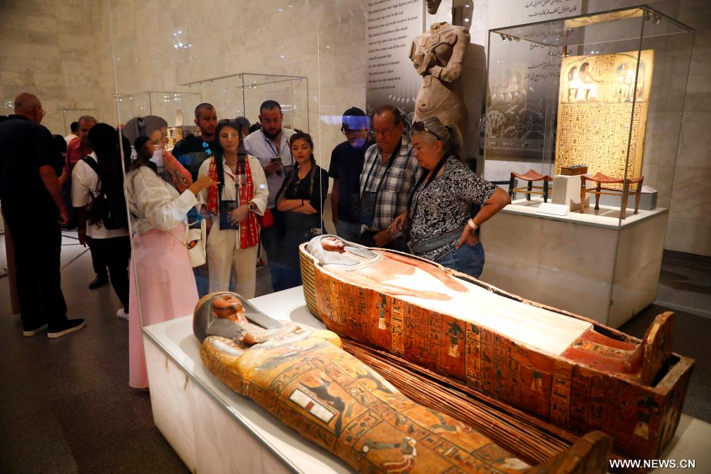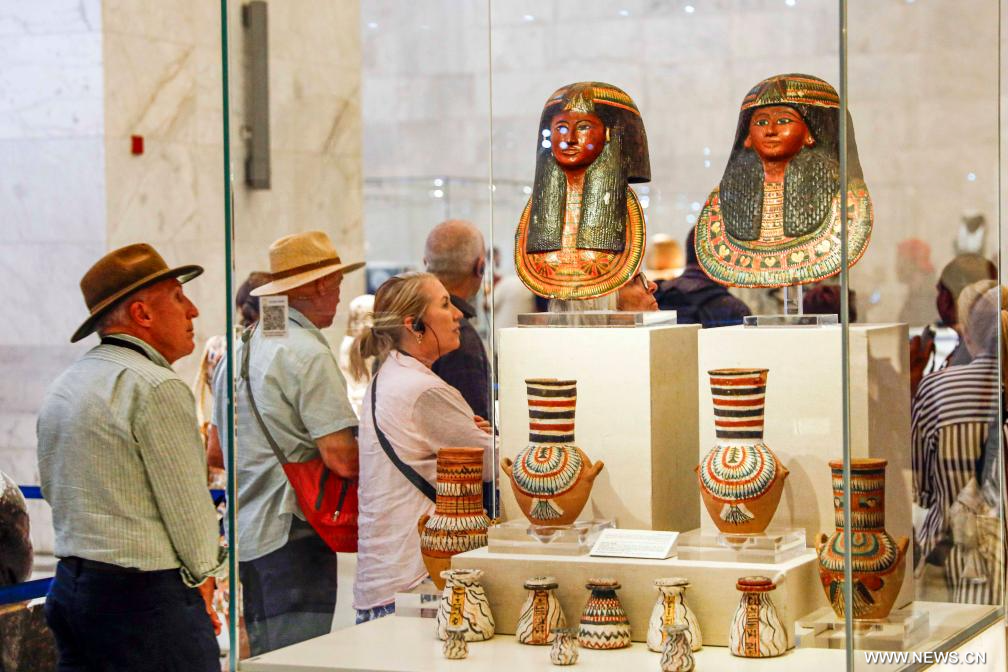 القاهرة 27 سبتمبر 2025 (شينخوا) في الصورة الملتقطة يوم 27 سبتمبر 2025، سائحون يشاهدون معروضات في المتحف القومي للحضارة المصرية تزامنا مع الاحتفال بيوم السياحة العالمي في العاصمة المصرية القاهرة.