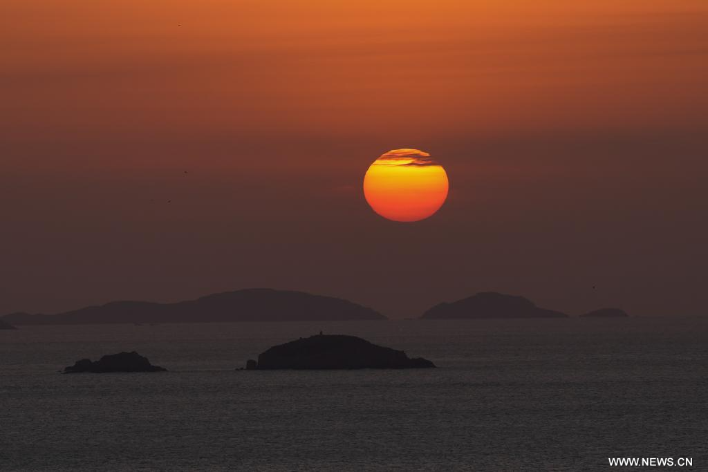 غروب الشمس في جزيرة هوانياو بشرقي الصين