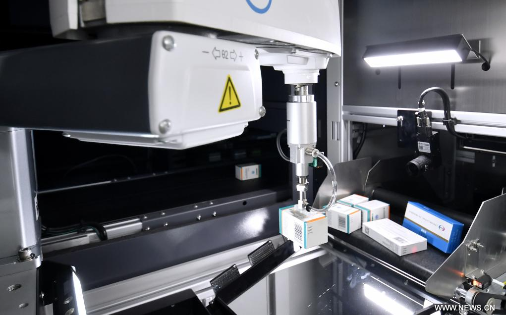 بكين 5 فبراير 2026 (شينخوا) في الصورة الملتقطة يوم 3 فبراير 2026، روبوت لفرز الأدوية يعمل في صيدلية فرع تونغتشو التابع لمستشفى بكين آنتشن في العاصمة الصينية بكين.