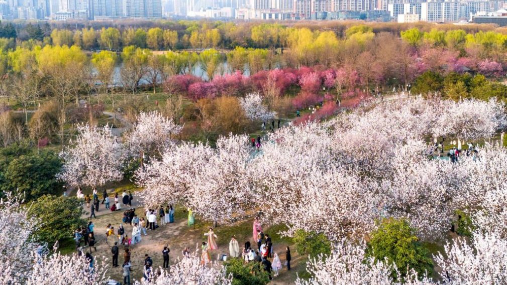قوييانغ 12 مارس 2026 (شينخوا) في الصورة الملتقطة يوم 11 مارس 2026، أزهار الكرز تتفتح في منطقة قويآن الجديدة بمقاطعة قويتشو في جنوب غربي الصين.