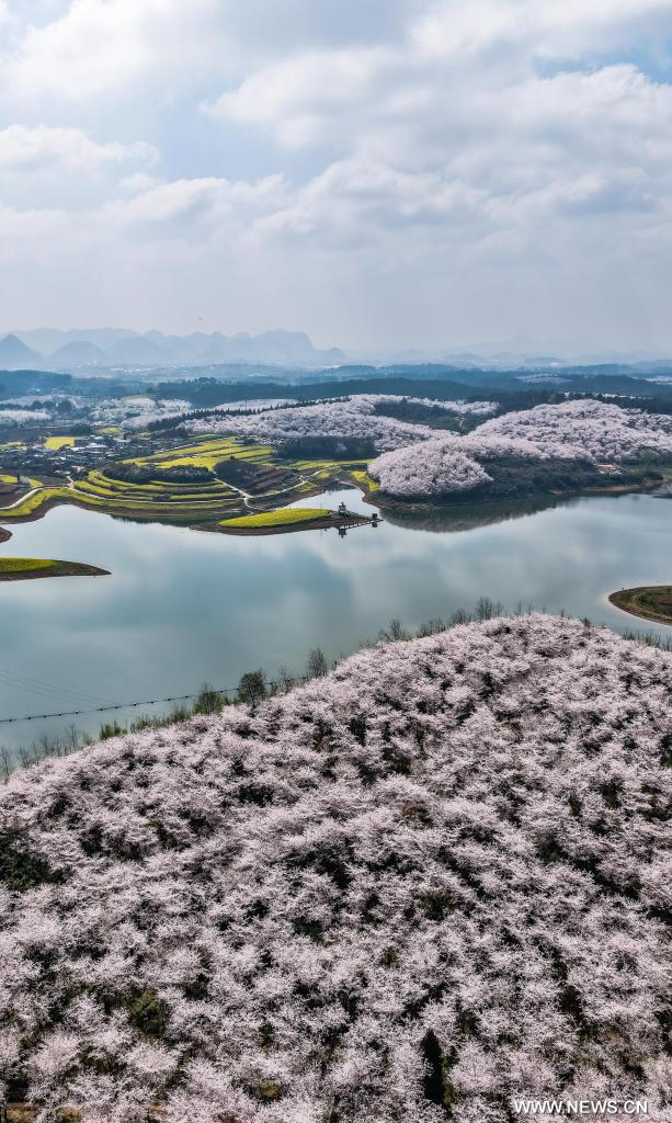 مناظر خلابة لأزهار الكرز في مقاطعة قويتشو بجنوب غربي الصين