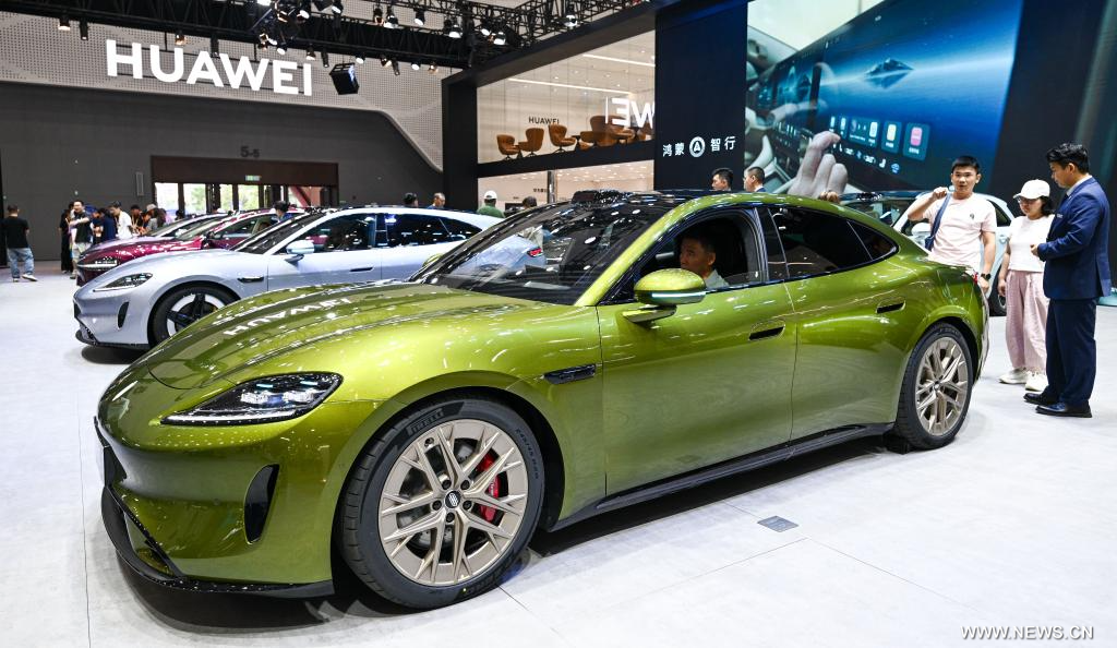 هايكو 18 أبريل 2026 (شينخوا) في الصورة الملتقطة يوم 17 أبريل 2026، زوار يشاهدون السيارات المعروضة في جناح "هواوي" خلال الدورة السادسة من معرض الصين الدولي للمنتجات الاستهلاكية في مدينة هايكو حاضرة مقاطعة هاينان بجنوبي الصين.